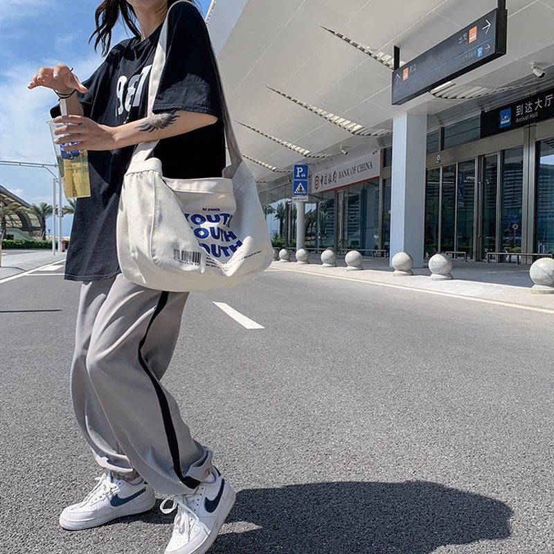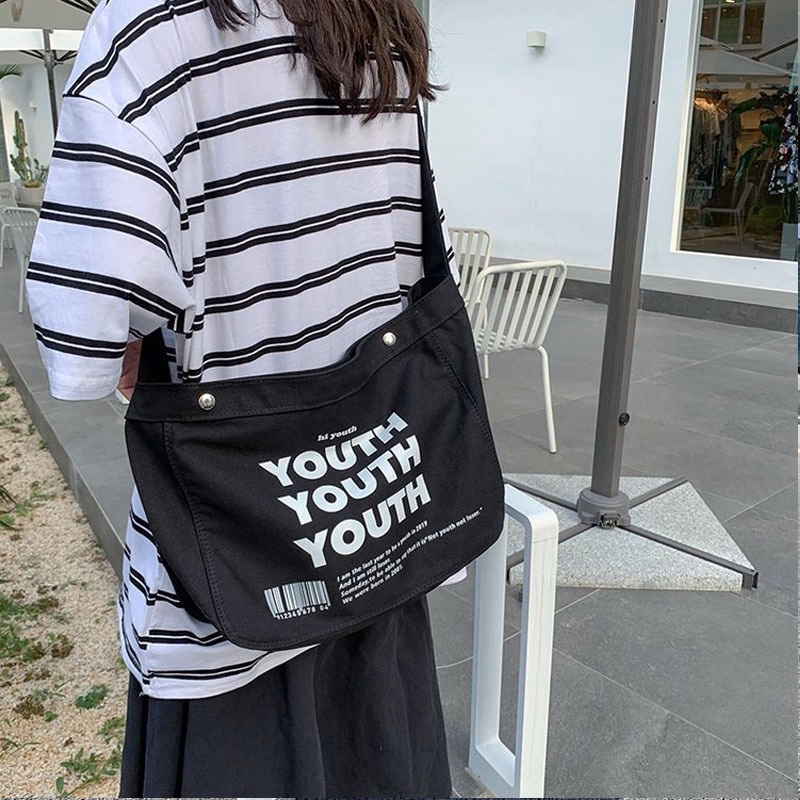 Túi Đeo Chéo Canvas Unisex Youth Cá Tính, Túi Đeo Vai đi học đi chơi phong cách Hàn Quốc.