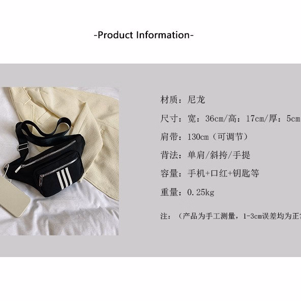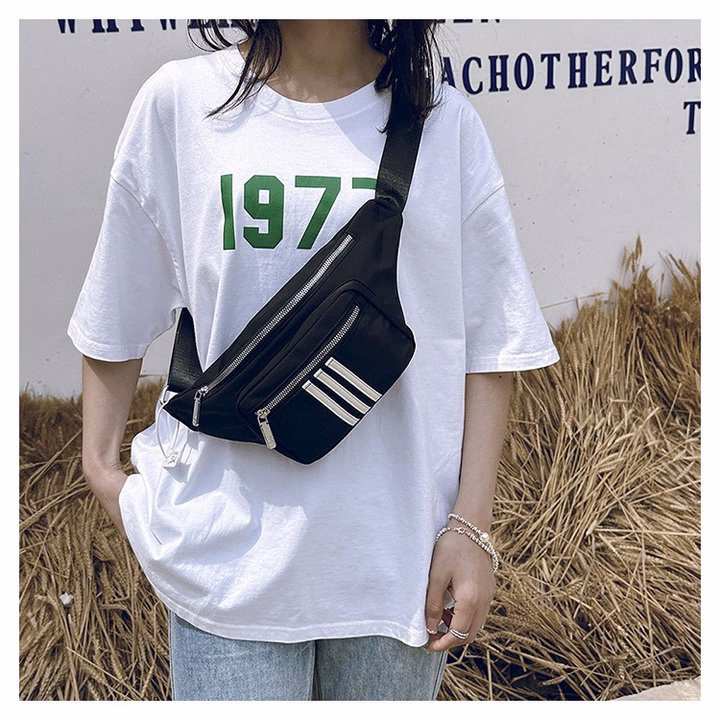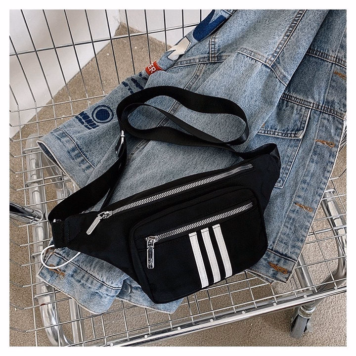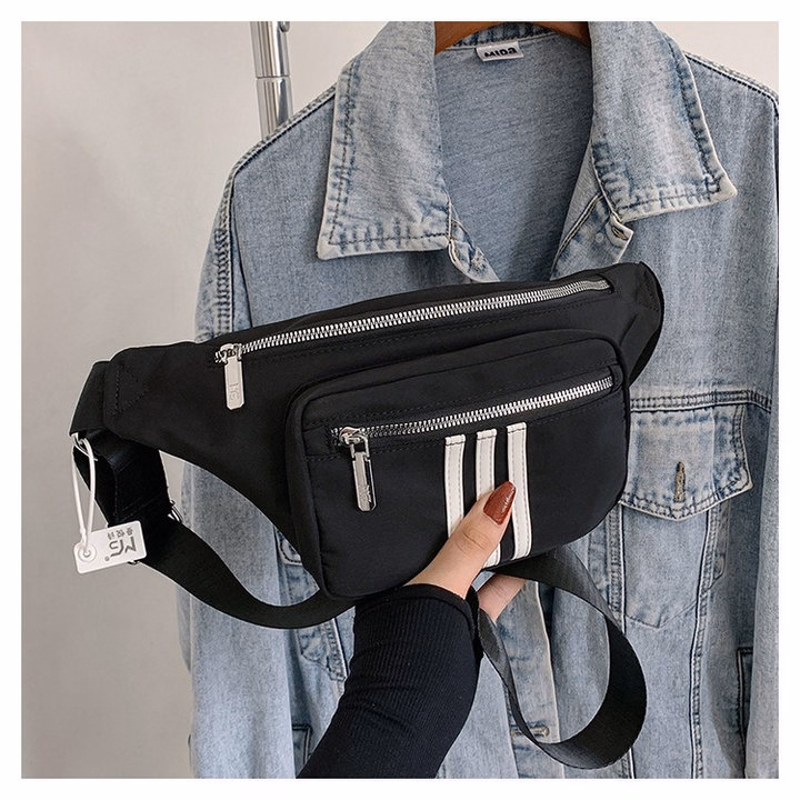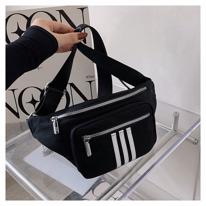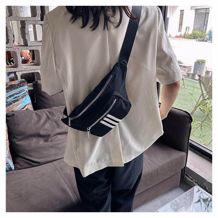Túi Đeo Chéo Bao Tử 3 Sọc Trắng Vải Dù Chống Thấm Nước Thời Trang Nam Nữ Wh622 – Winnie House