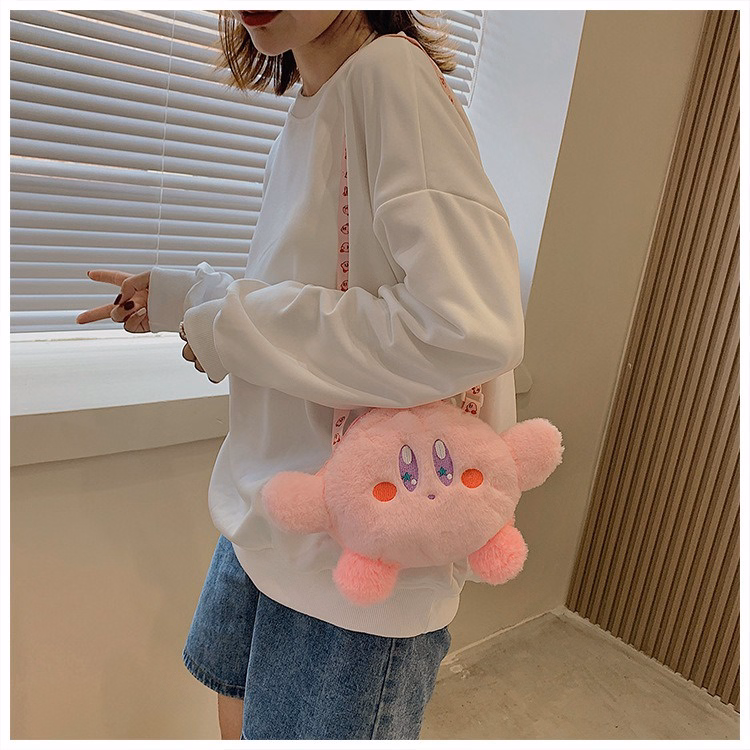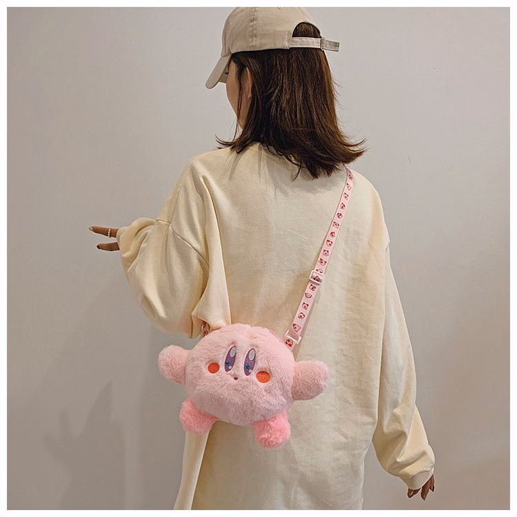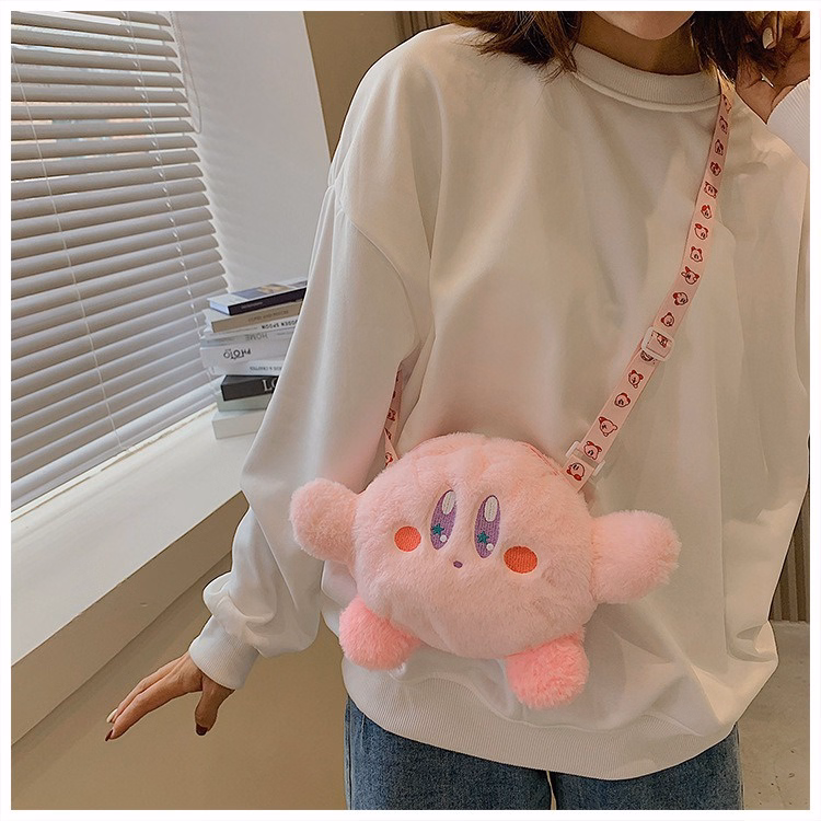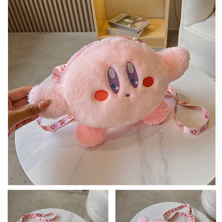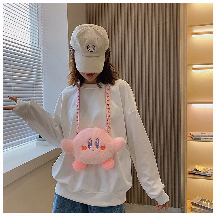 Túi đeo chéo ngôi sao Kirby, thời trang lông nhung, túi trẻ em hoạt hình dễ thương, có thể đựng điện thoại di động, mỹ phẩm và các vật dụng nhỏ khác, dễ mang theo, đơn giản và thoáng mát.