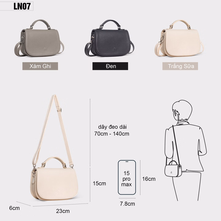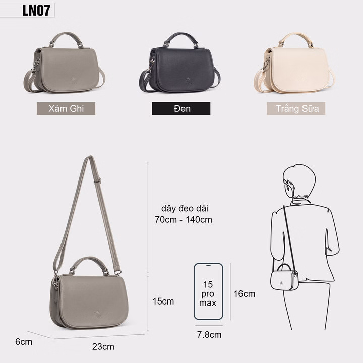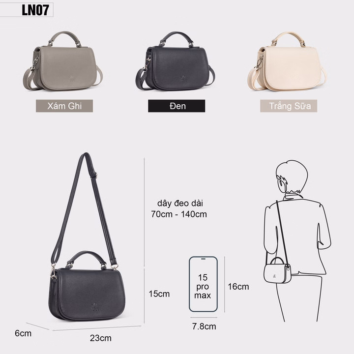 Kích thước linh hoạt: Thích hợp đeo chéo, cầm tay hay đeo vai, bạn có thể biến đổi phong cách
