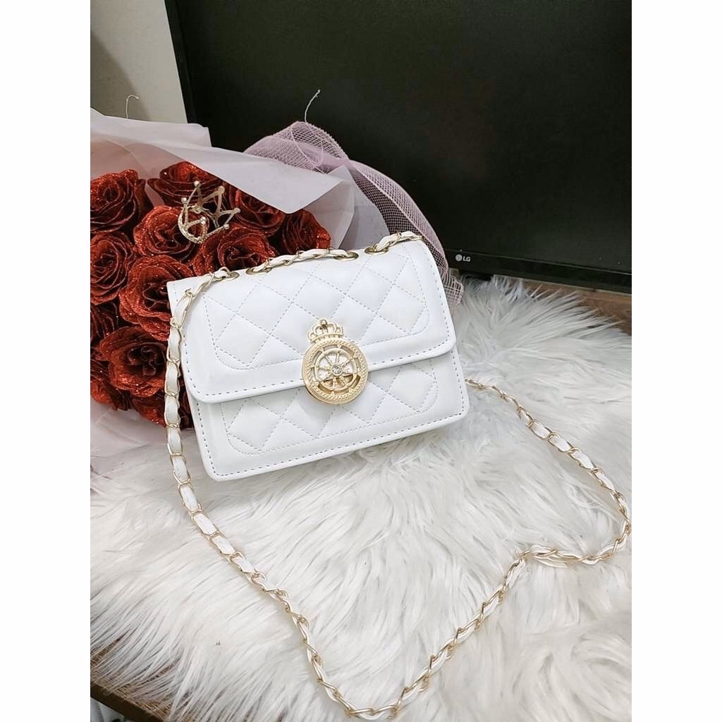 Túi xách nữ khóa vương miện cực sang chảnh , túi có thể đeo chéo, đeo vai và chập 2 dây để cắp nách được , với 1 ngăn rộng thoải mái đựng đồ , dây đeo xích kết hợp da mới lạ.