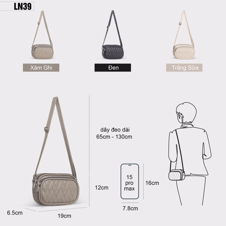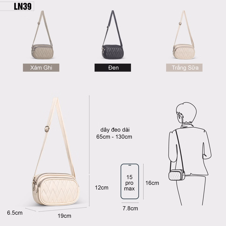 Chiếc túi đeo chéo nữ thanh lịch, đơn giản nhưng đầy cuốn hút, mang đến phong cách hiện đại phù hợp với nhiều dịp khác nhau. Sản phẩm này không chỉ là món phụ kiện cần thiết trong tủ đồ của bạn mà còn là người bạn đồng hành trong mỗi chuyến đi. Sự kết hợp hoàn hảo giữa tính thẩm mỹ và chức năng tiện dụng giúp túi trở thành sản phẩm lý tưởng dành cho phái đẹp.