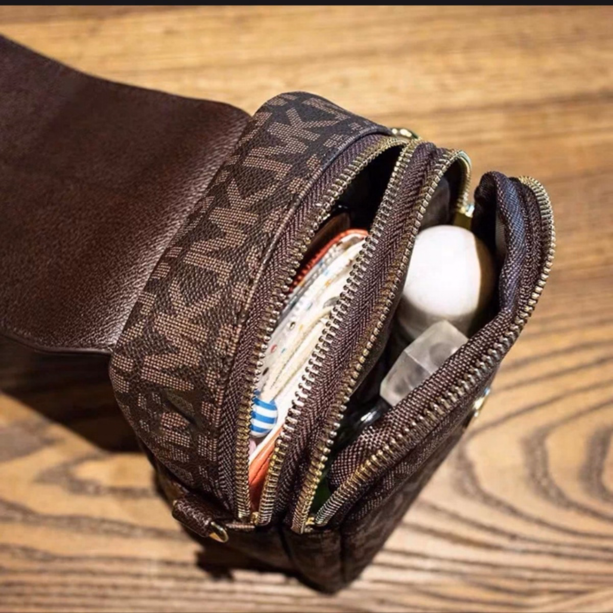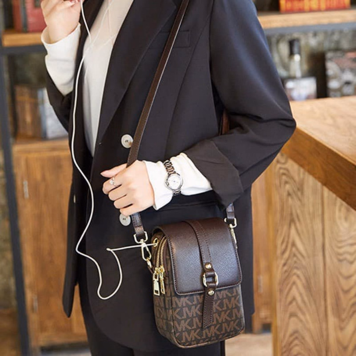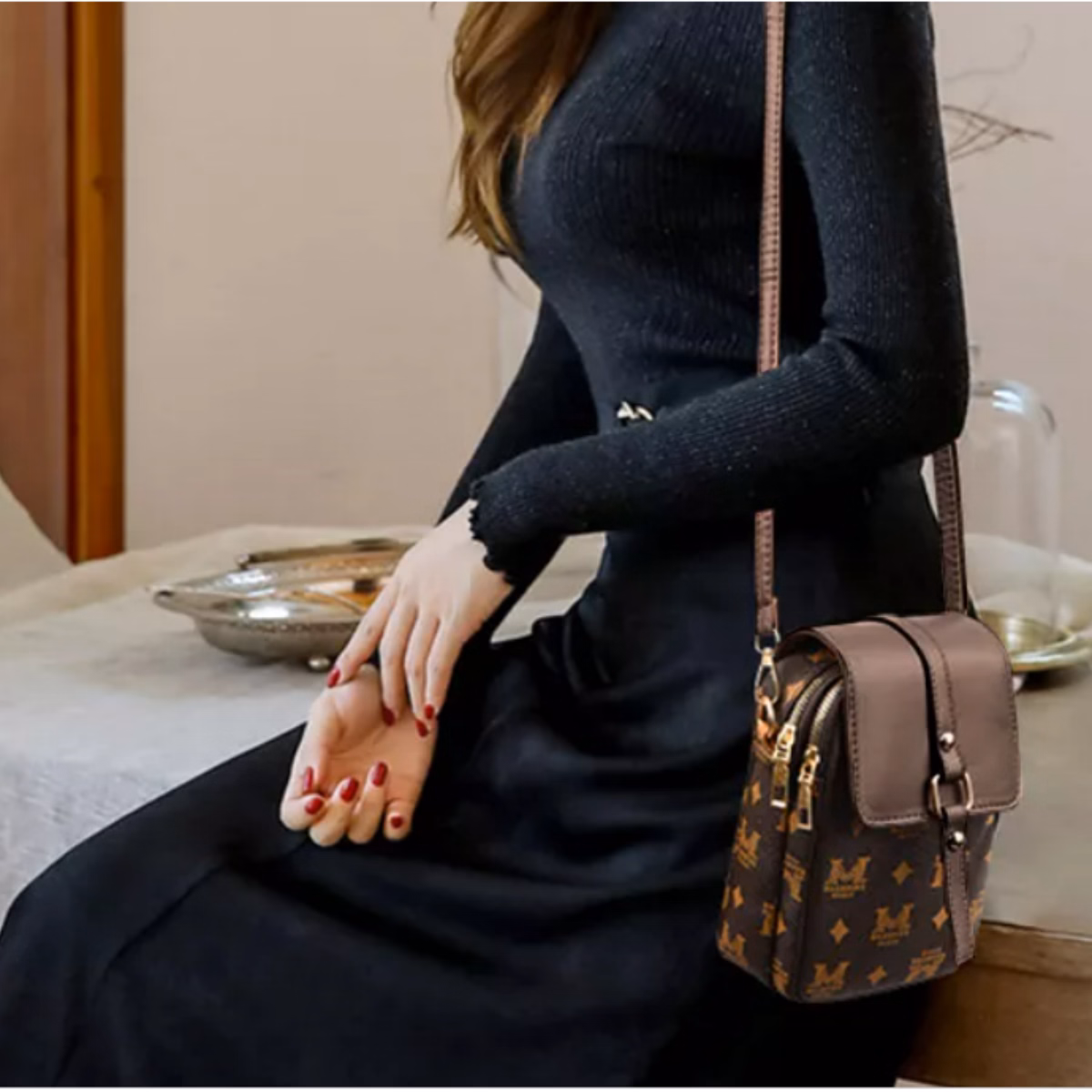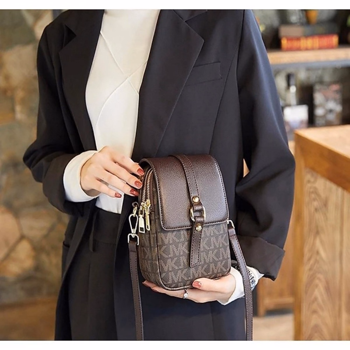 • Phom túi phồng không cần độn, 2 ngăn để điện thoại còn để thêm ví tiền và mỹ phẩm nhỏ gọn nữa, nhìn cực xì tin luôn nhé.