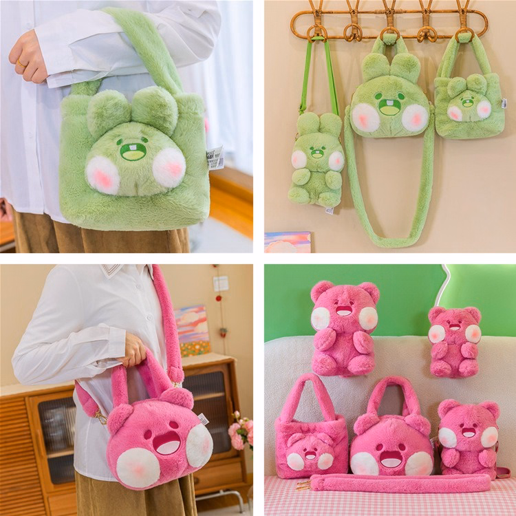 Túi đeo chéo thú nhồi bông hoạt hình chú Mèo Dudu Racoon Doodle Meow má hồng siêu cute phong cách lolita đáng yêu