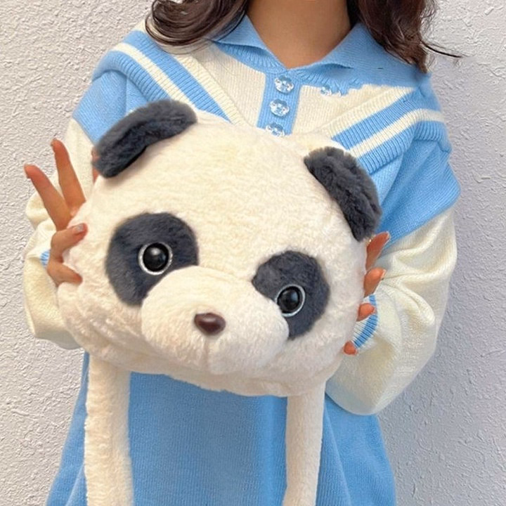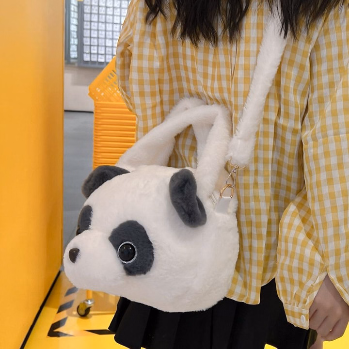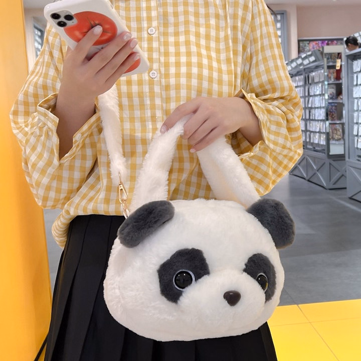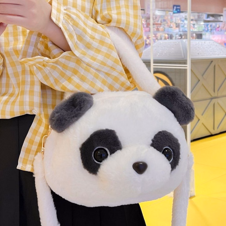 Túi đeo chéo Gấu Trúc nhồi bông cỡ lớn bản Dây Nhung Lông phong cách hoạt hình dễ thương