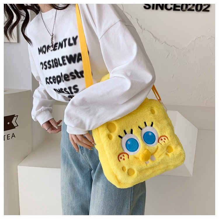 Túi Đeo Chéo Hình Spongebob Nhồi Bông Dễ Thương Cá Tính Có Quai Xách Unisex – Dmastore