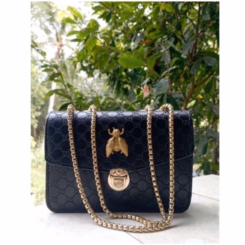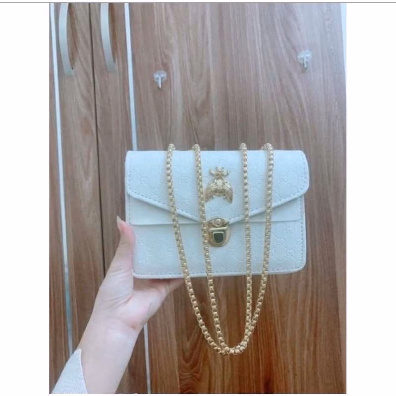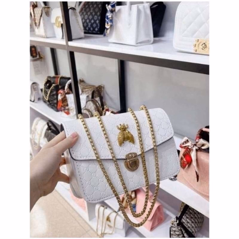 Túi xách nữ khóa sập với họa tiết ong vàng dễ thương ,túi thiết kế dây xích đặc điều chỉnh có thể đeo chéo, đeo vai, cắp nách , với gam màu đen và trắng nhẹ nhàng dễ phối đồ.