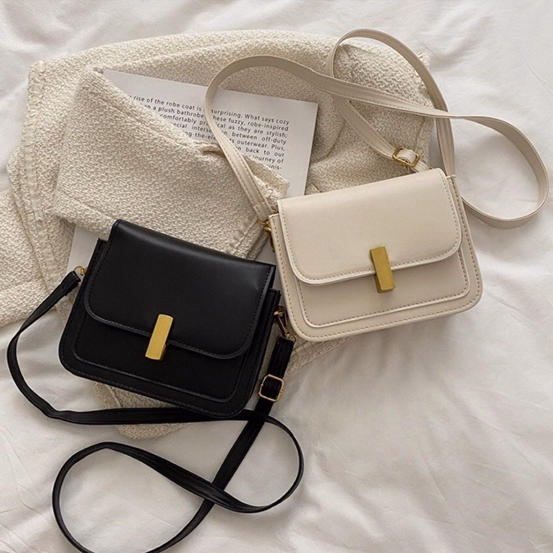 Túi đeo chéo nữ túi xách da trơn nắp gập khóa cài có một ngăn thời trang Hàn Quốc T097