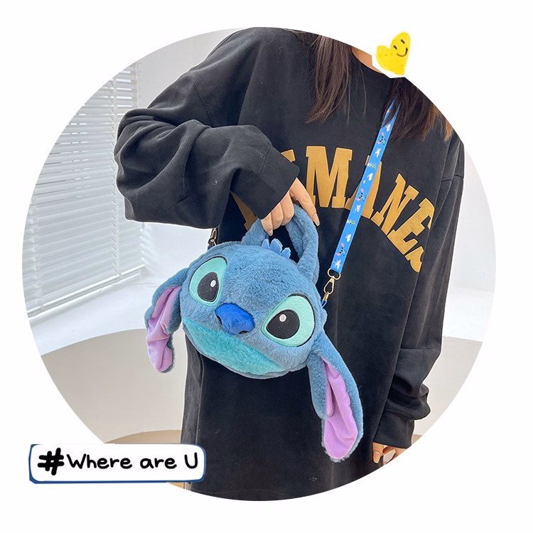 Túi Đeo Chéo Thú Bông Hoạt Hình Stitch Có Dây Đeo In Hình Siêu Dễ Thương