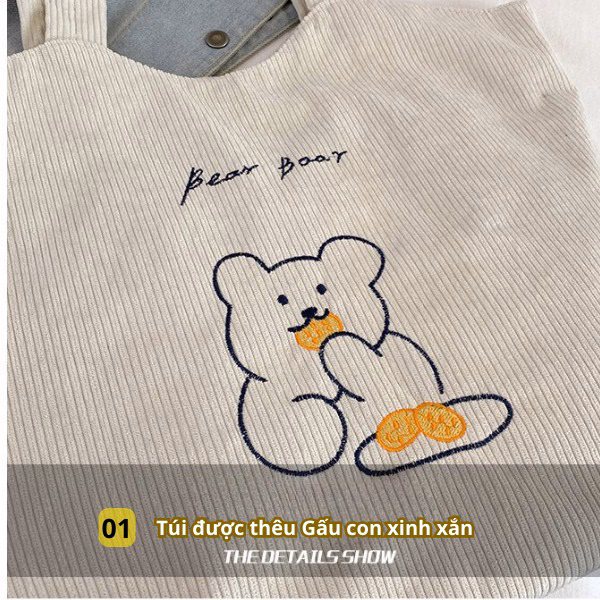 – Tên sản phẩm: Túi đeo chéo, tote nhung thêu Gấu Bh Kids, thời trang, cá tính, đựng vừa Laptop 15.6 inch, Ipad, A4 – Ch124