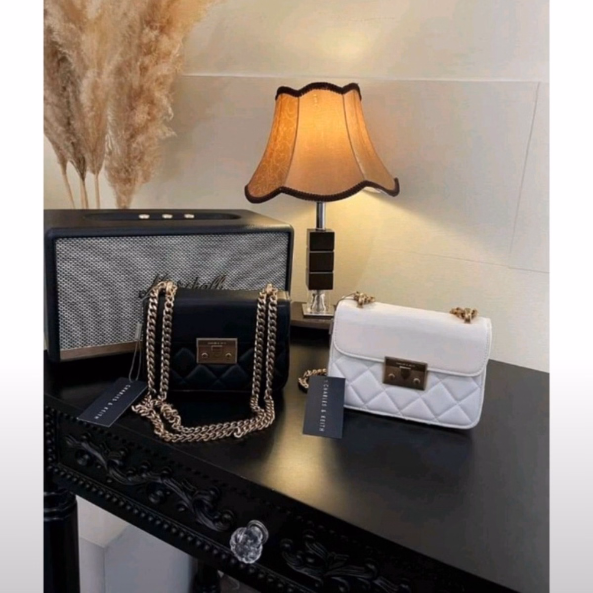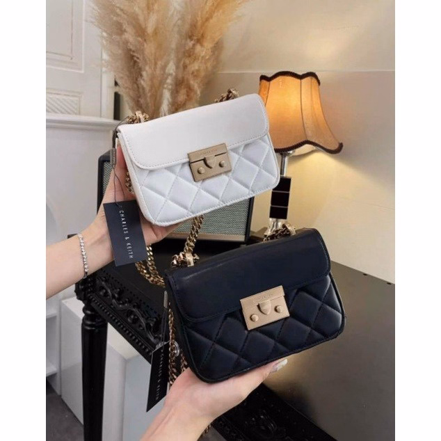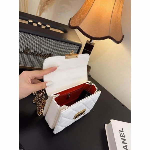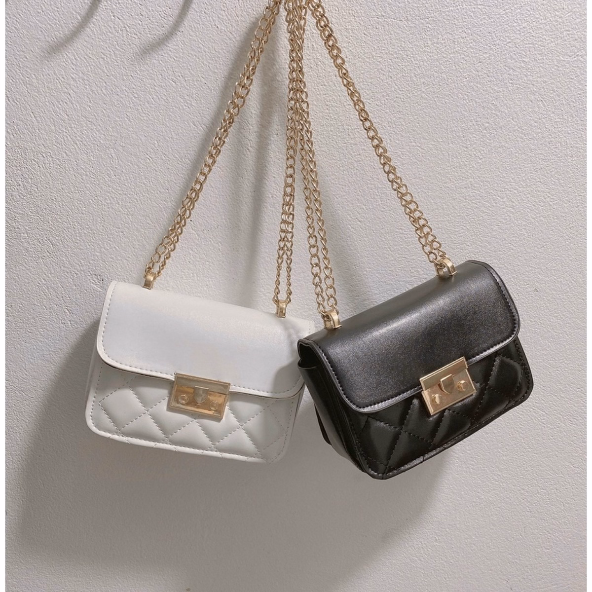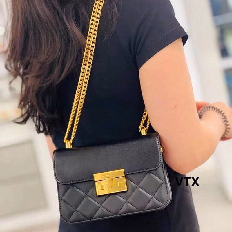 Túi đeo chéo Cnk da lì chần trám sang trọng, túi xách đeo chéo nữ chất liệu da, túi xách nữ khóa bấm size 18
