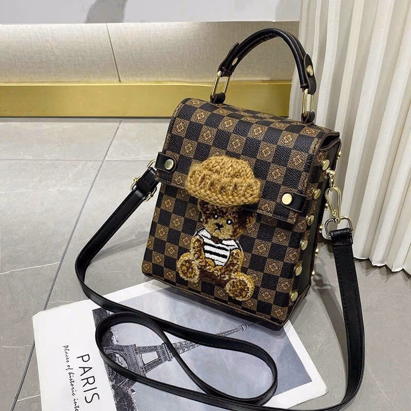 Tên sản phẩm: Túi Điện Thoại Dáng Chữ Nhật Tán Đinh Hai Bên Thêu Gấu Vl04 – Jinbbq