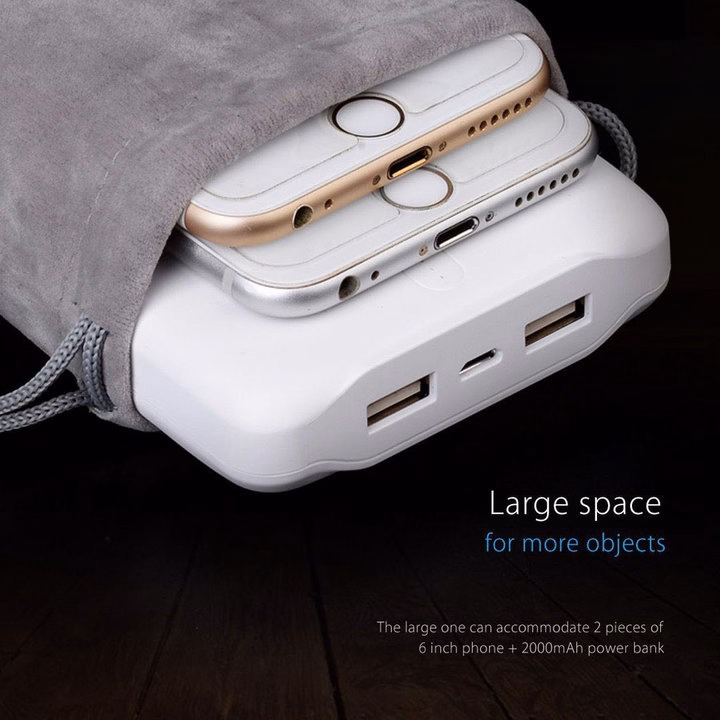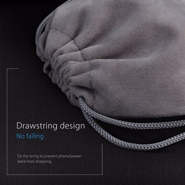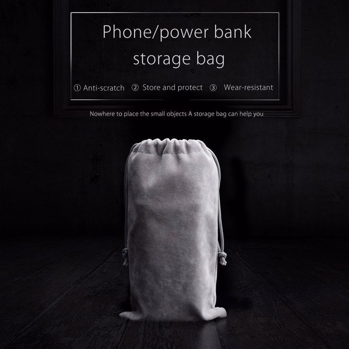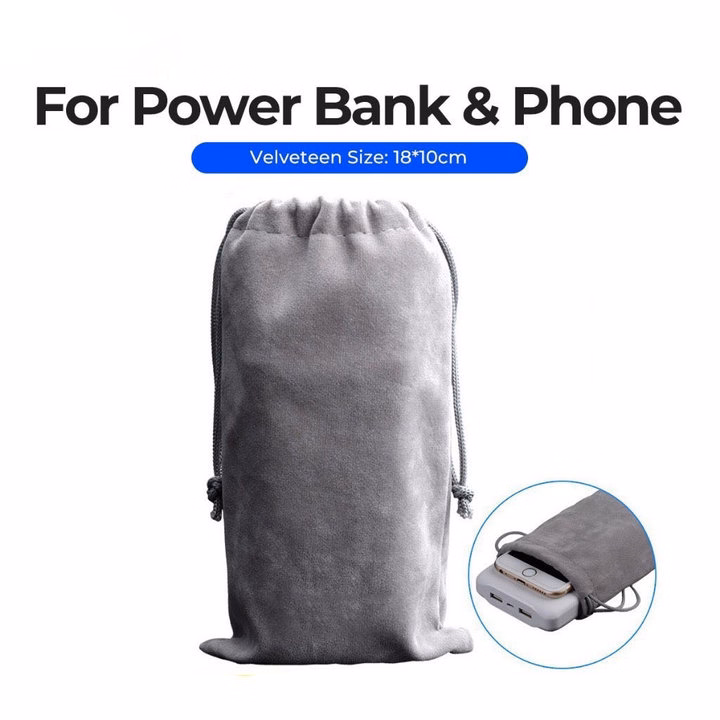 Túi Đựng Điện Thoại Và Sạc Dự Phòng Usb Vải Nhung Mềm Có Dây Rút Màu Xám Hr345- Haras