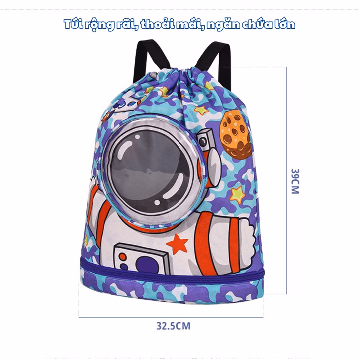 Túi đựng đồ bơi, đồ thể thao Bh Kids, có ngăn khô và ướt riêng biệt, ngăn để giày, kính, họa tiết hoạt hình – Ch176