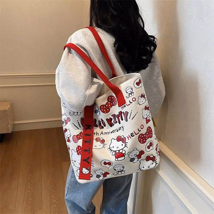 Túi Tote Hello Kitty Khoá Kéo Dễ Thương