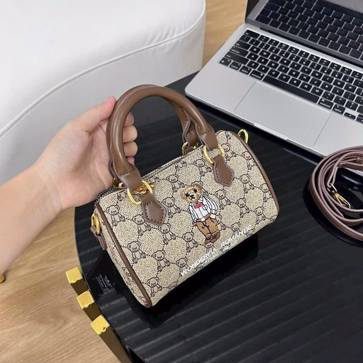 🧸 Thiết kế độc đáo: Túi trống dáng mini xinh xắn với hình chú gấu đáng yêu, điểm nhấn thời trang cho mọi set đồ.