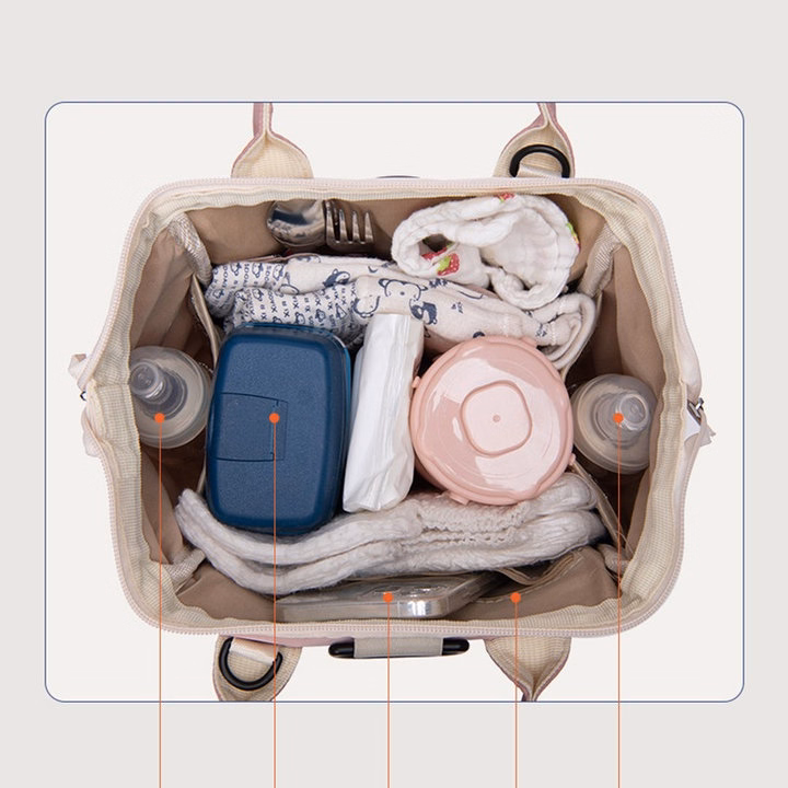 Túi xách bỉm sữa là một vật dụng không thể thiếu đối với các ông bố và bà mẹ, vì túi có thể sắp xếp gọn gàng số lượng lớn đồ đạc mỗi khi đưa bé ra ngoài. Phía bên trong túi bỉm sữa được thiết kế từng ngăn như ngăn đựng bình sữa, bỉm riêng biệt sao cho đồ đạc không bị lộn xộn.