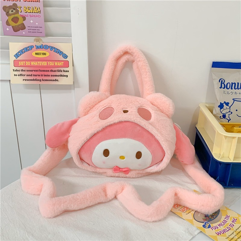 – Tên sản phẩm: Túi Xách Đeo Chéo Gấu Sanrio Đội Mũ Dây Nhung Siêu Đáng Yêu