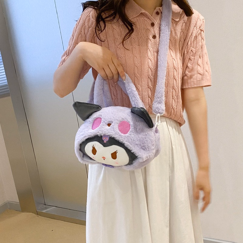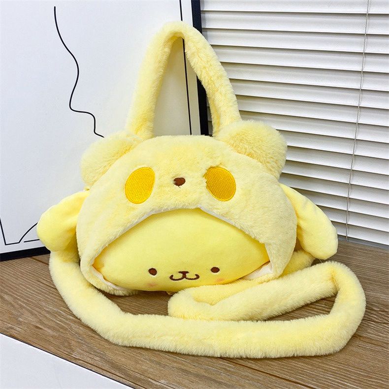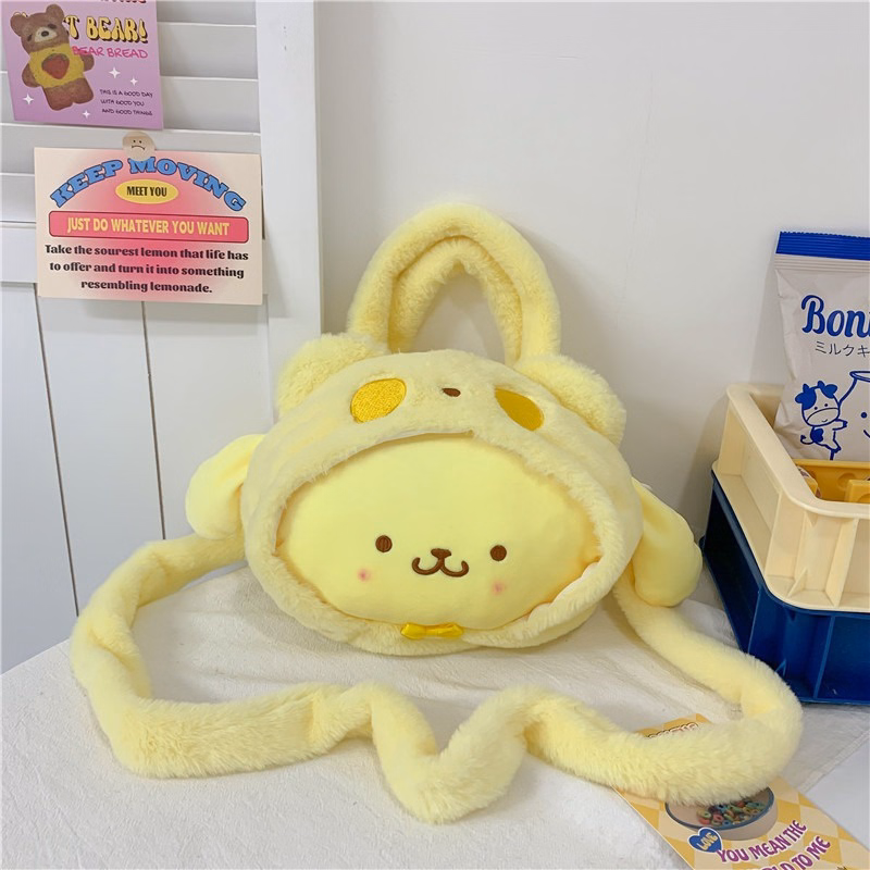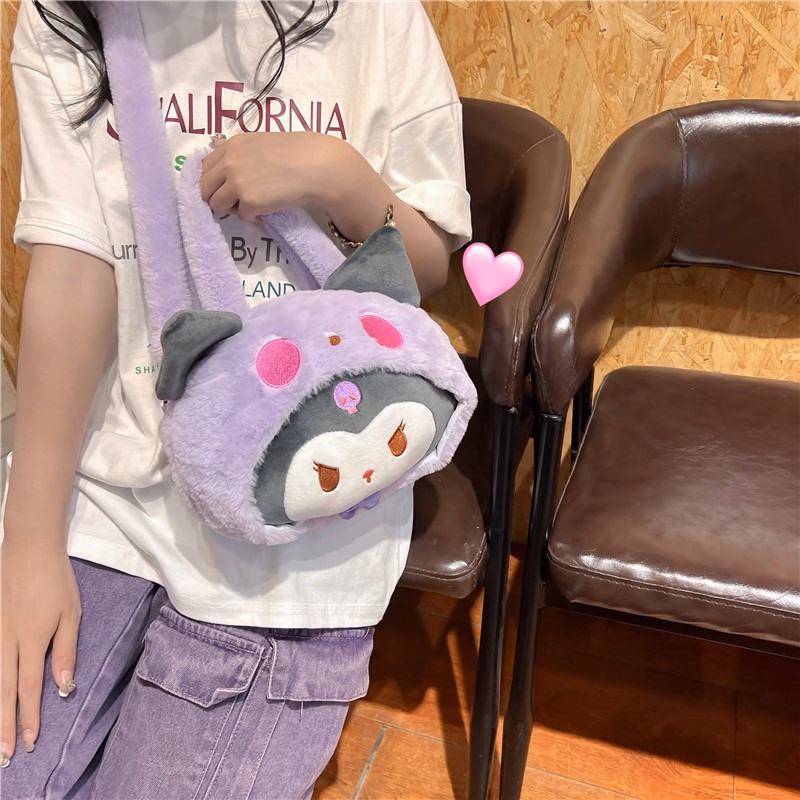 Túi Đeo Chéo Dây Nhung Gấu Sanrio Đội Mũ Đáng Yêu Dễ Thương