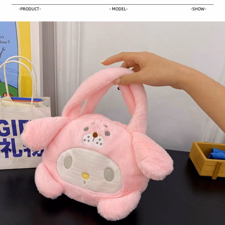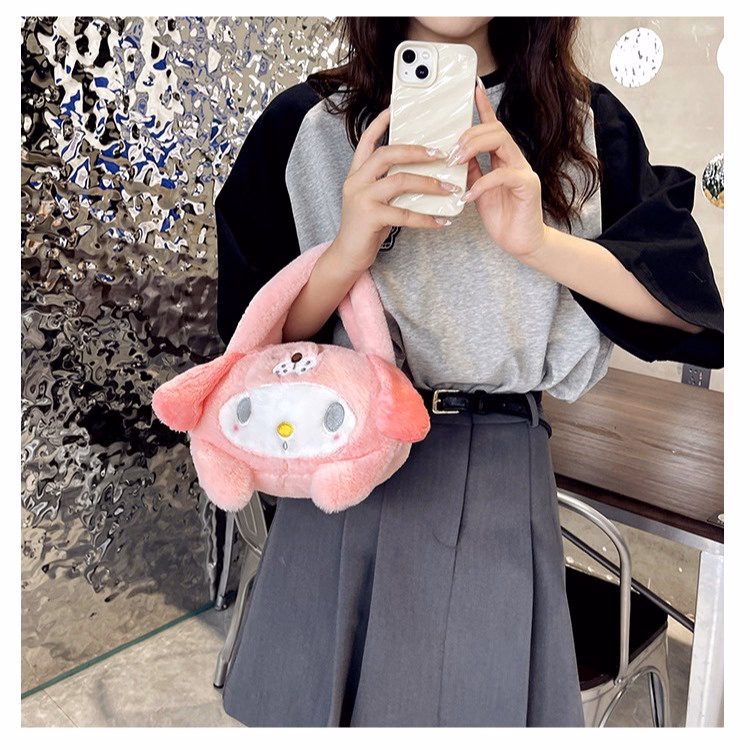 – Tên sản phẩm: Túi Xách Gấu Sanrio nhồi bông Mũ Gấu hình Kuromi, Melody, Cinnamoroll… Lolita hoạt hình cute
