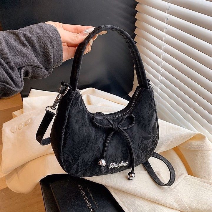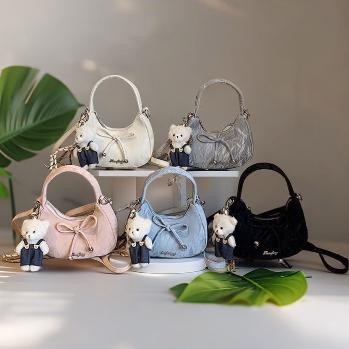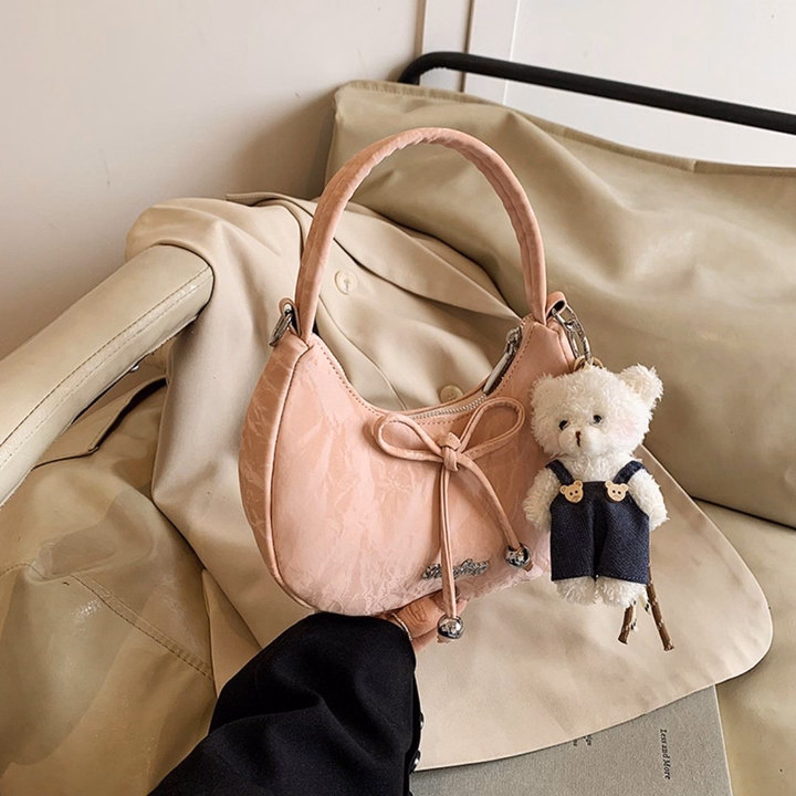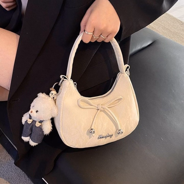 Túi Xách Kẹp Nách, Đeo Chéo Da Nhung Đính Nơ, Tặng Gấu Siêu Cute W761 – Pipi Store