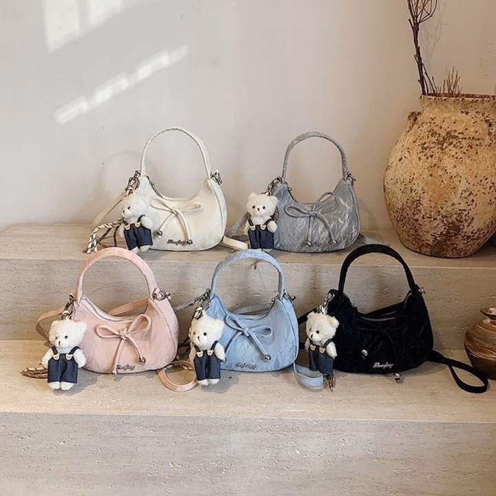 Túi Xách Kẹp Nách, Đeo Chéo Da Nhung Đính Nơ W761 – Winnie House