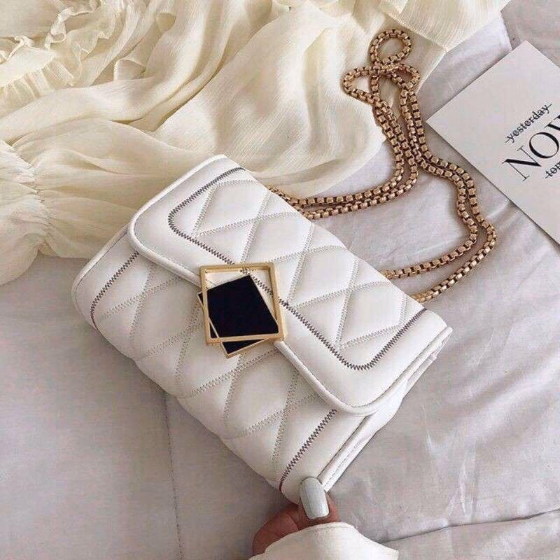 Túi xách khóa vuông đôi mới lạ xinh xắn với thiết kế nhẹ nhàng, đơn giản phù hợp với tất cả các nàng, dây đeo xích đặc chắc chắn .,Màu sắc dễ kết hợp với nhiều trang phục khác.