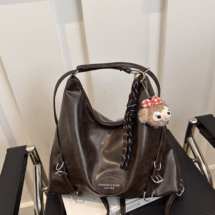 Túi Xách Kiêm Balo Da Bóng Mờ Cá Tính Kèm Móc Gấu Xinh W683 – Winnie House