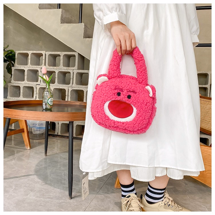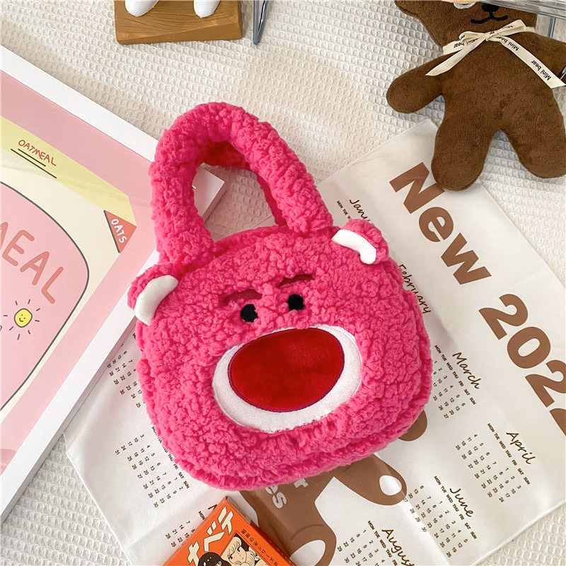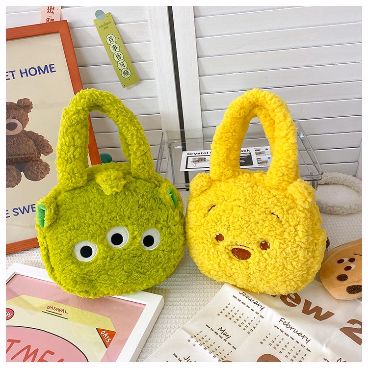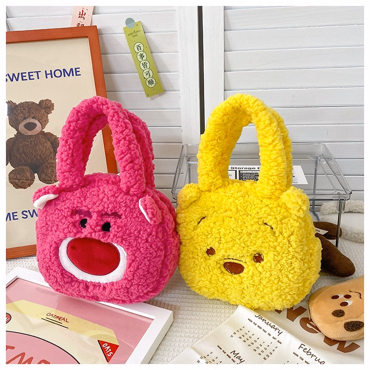 Túi xách len cừu thú bông hoạt hình Gấu Dâu, Gấu Pooh, Quái Vật 3 Mắt dễ thương dành cho bé gái