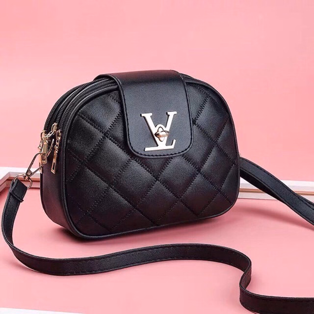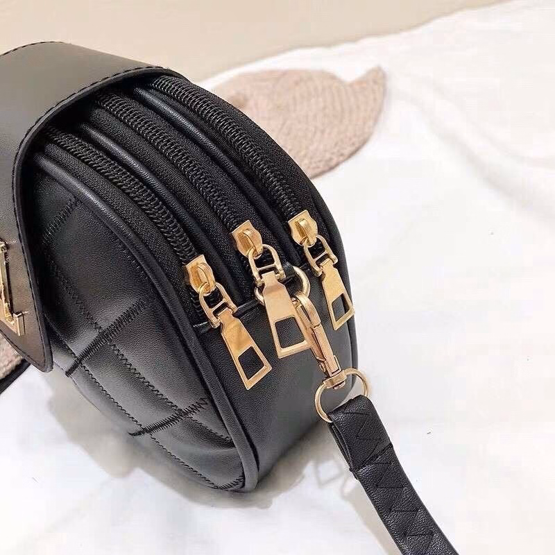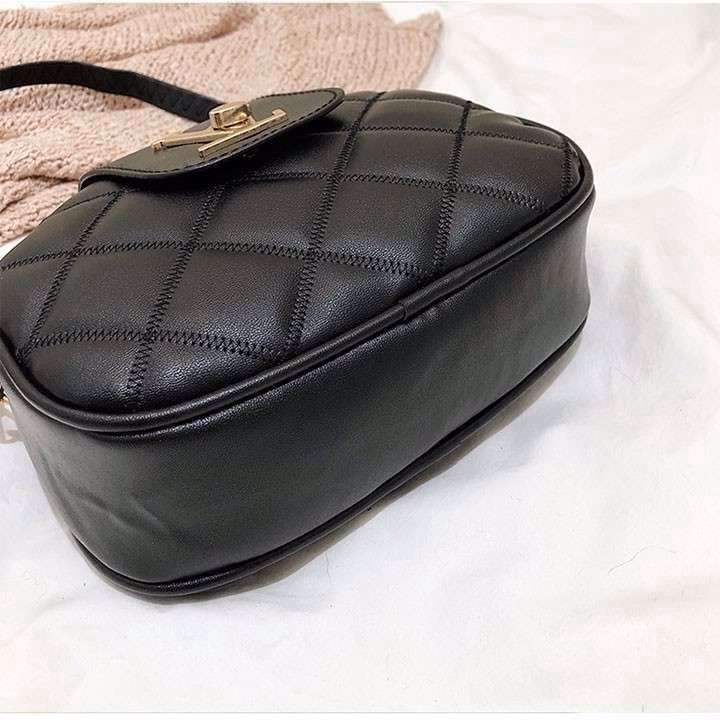 Túi đeo chéo thời trang khóa V dáng tròn phong cách trẻ trung. Được thiết kế với 3 ngăn đựng đồ.