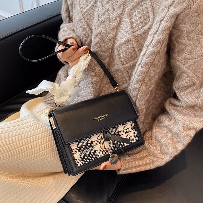Túi Xách Nữ Deco Vải Dạ Dây Đeo Da Phối Kim Loại Kèm Khăn Lụa – Ausa House
