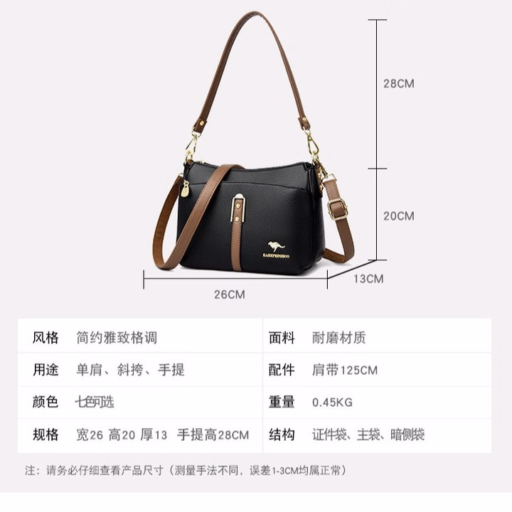 – Mô tả: Túi xách nữ đeo vai, hình dáng vuông nằm ngang, form túi mềm chắc chắn, ít biến dạng, mang phong cách Âu Mỹ sang trọng, thoải mái để các vật dụng cần thiết, phù hợp đi làm công sở, đi chơi, du lịch,v.v…