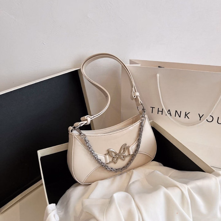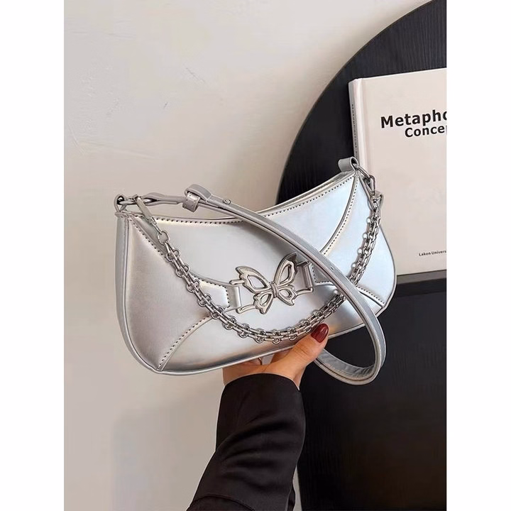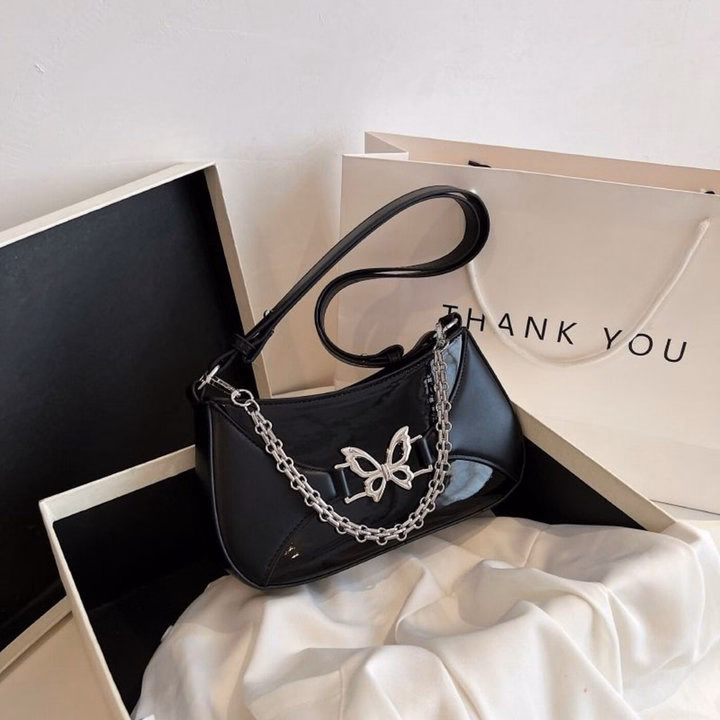 Một chiếc túi xách nữ kẹp nách đeo chéo đính xích họa tiết bướm – sang, xinh và cực cuốn hút 💖