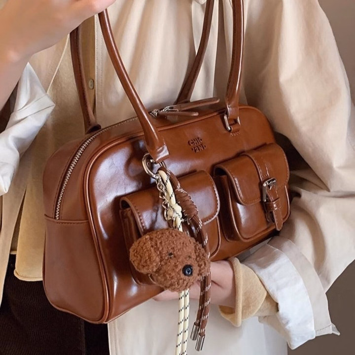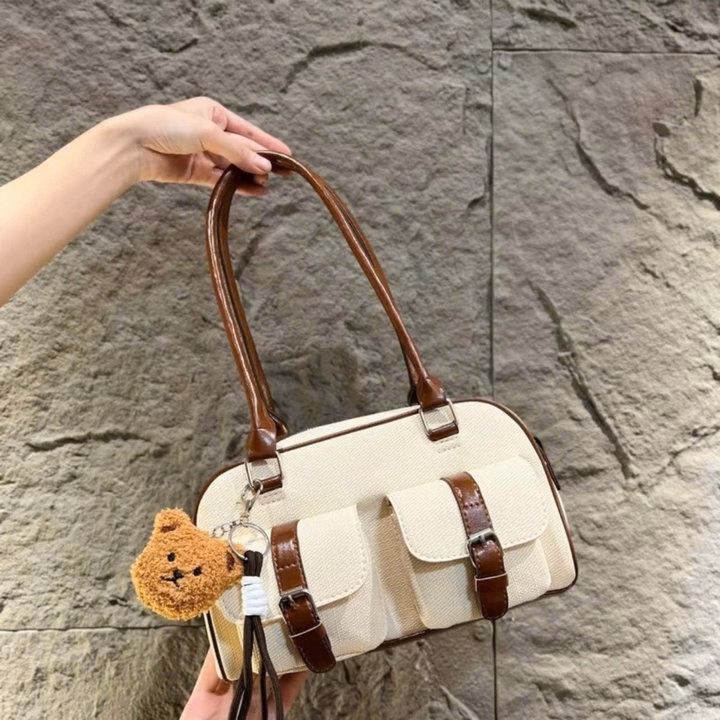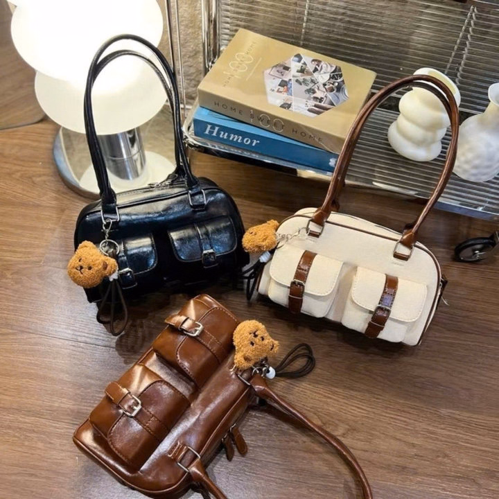 Thiết kế tinh tế với 2 quai xách chắc chắn, form túi cứng cáp giúp nàng tự tin mang đi học, đi làm hay dạo phố. Đặc biệt, tặng kèm móc treo gấu cực cưng 🧸 – điểm nhấn không thể bỏ qua!