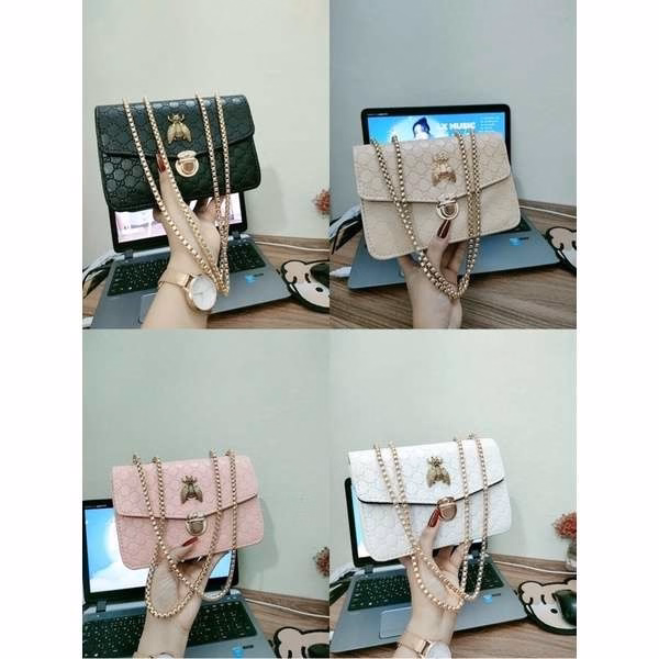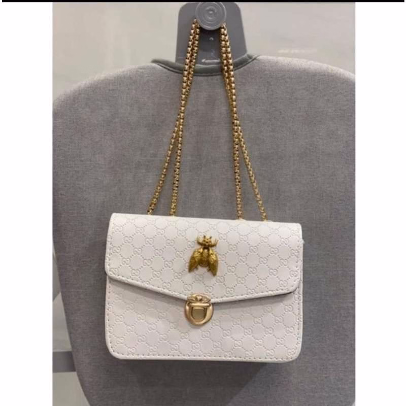 Túi xách nữ khóa sập với họa tiết ong vàng dễ thương ,túi thiết kế dây xích đặc điều chỉnh có thể đeo chéo, đeo vai, cắp nách , với gam màu đen và trắng nhẹ nhàng dễ phối đồ.