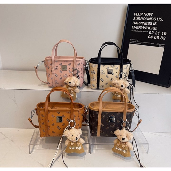 🎀 [Tặng Gấu Treo Cute] – Túi Xách Nữ Kẹp Nách Đeo Chéo Họa Tiết Gấu Dễ Thương W745 🎀