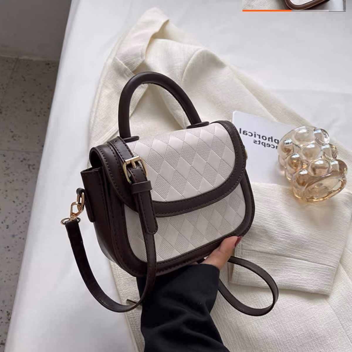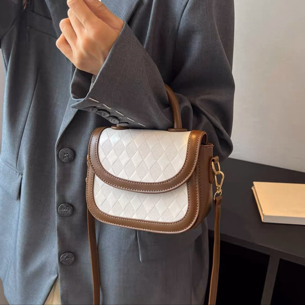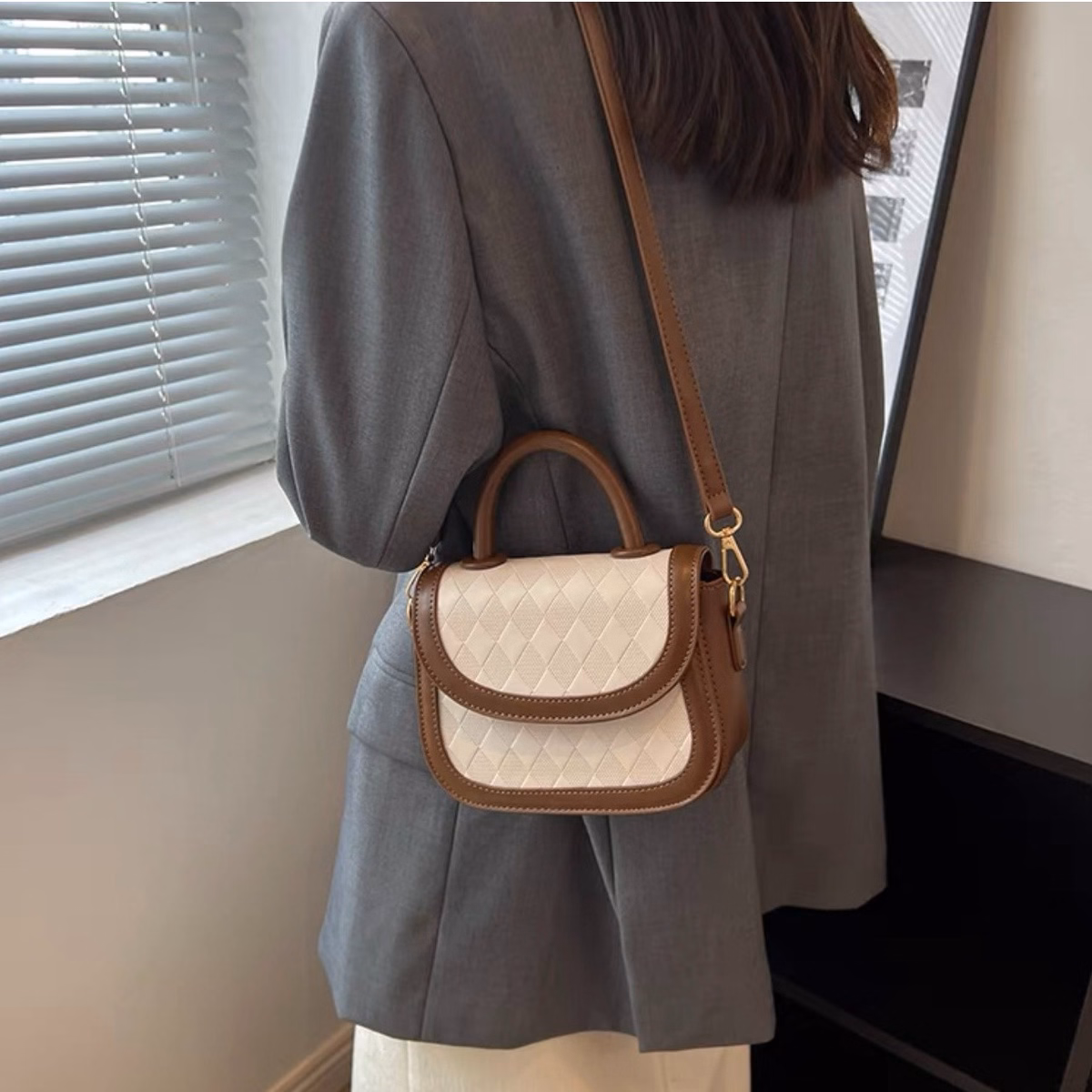 Túi Xách Nữ Nắp Gập Vòng Cung Caro Thoi Chìm – Ausa House