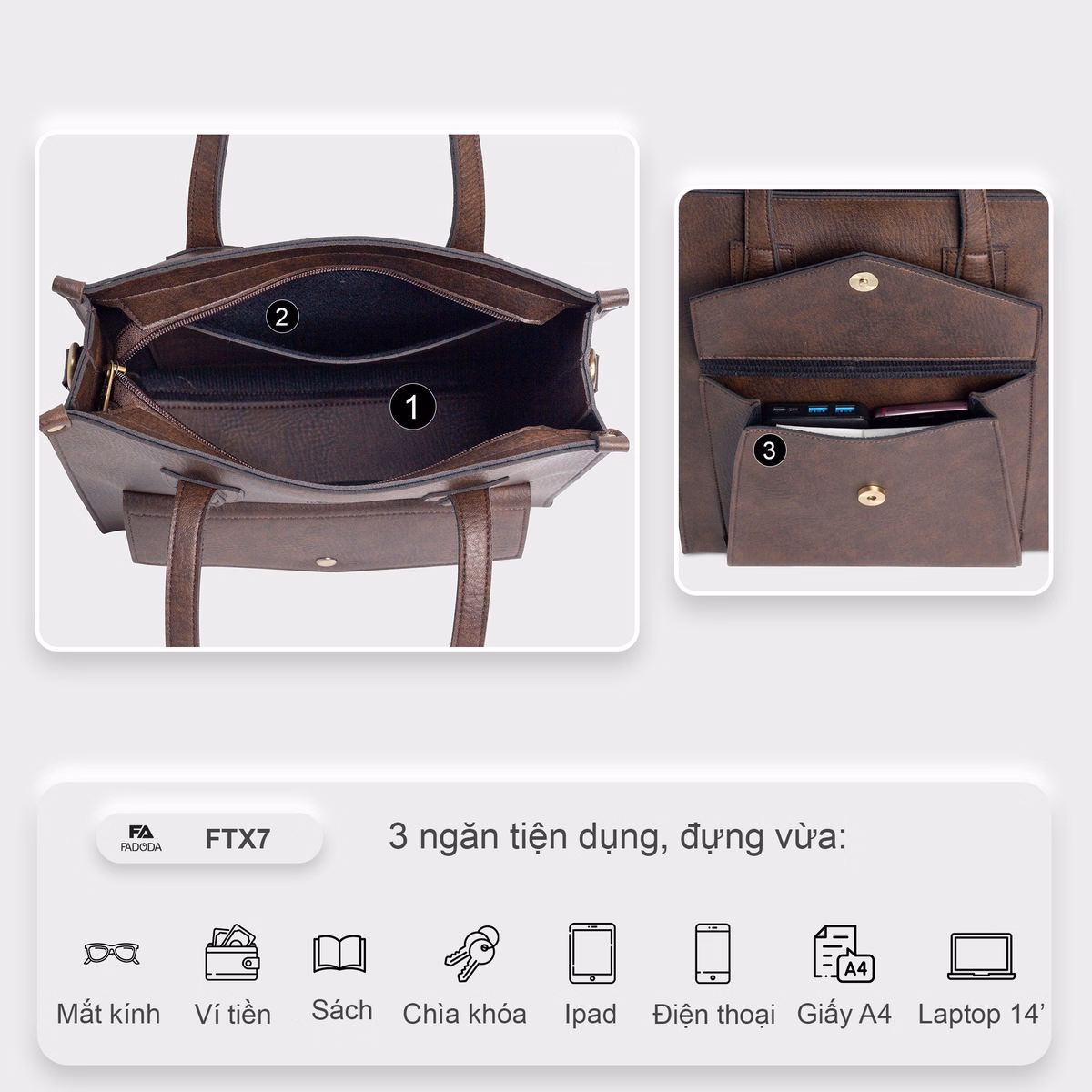 Túi xách nữ công sở đa năng Fadoda Ftx7 đựng vừa laptop 14 inch và tài liệu khổ a4 đây là một trong những điều mà các chị em đang mong muốn nhất khi sở hữu em túi này.