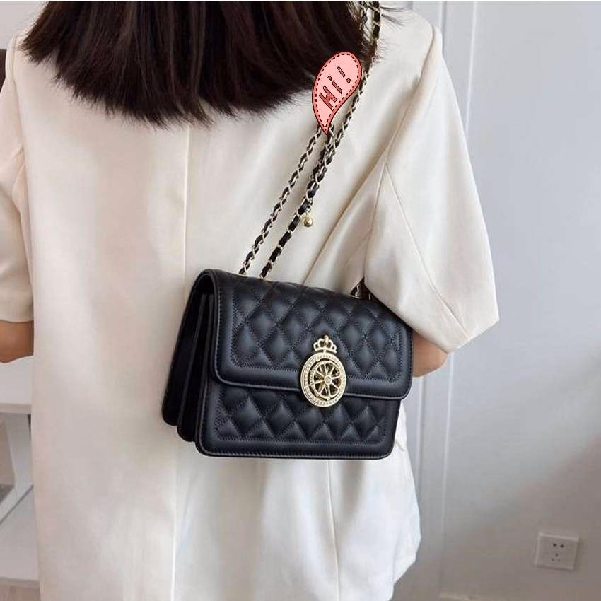 Túi xách nữ khóa vương miện cực sang chảnh , túi có thể đeo chéo, đeo vai và chập 2 dây để cắp nách được , với 1 ngăn rộng thoải mái đựng đồ , dây đeo xích kết hợp da mới lạ.