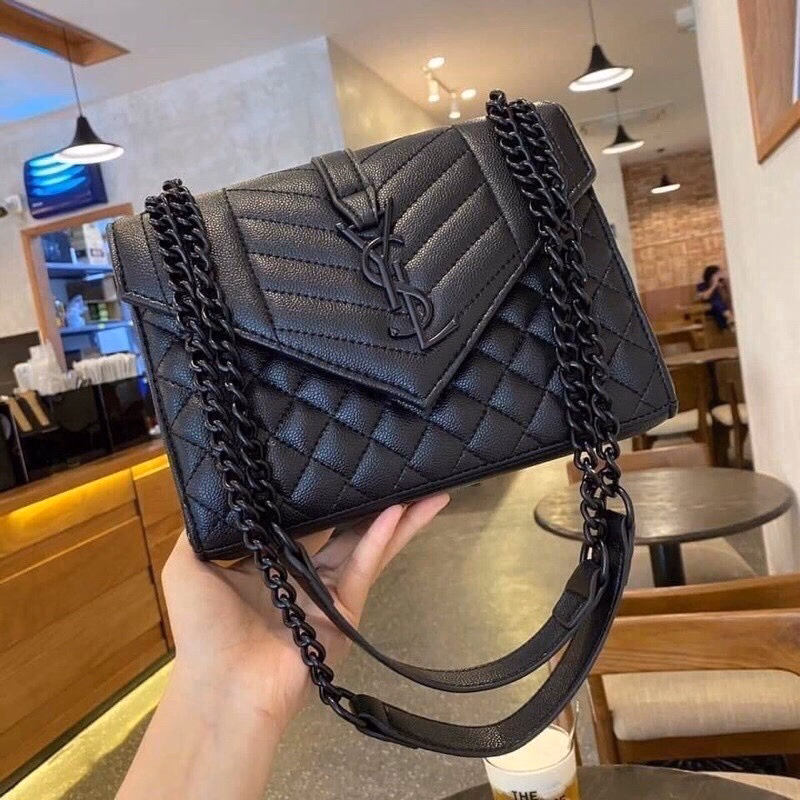 Túi xác nữ Ysl đeo chéo,đeo vai dây xich đen kết hợp với dây da với thiết kế vân trám