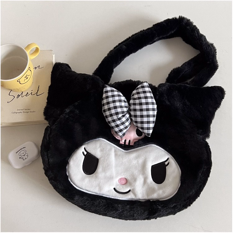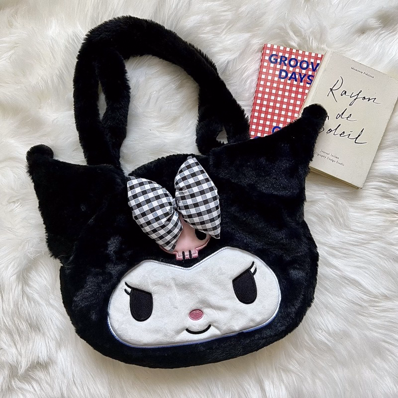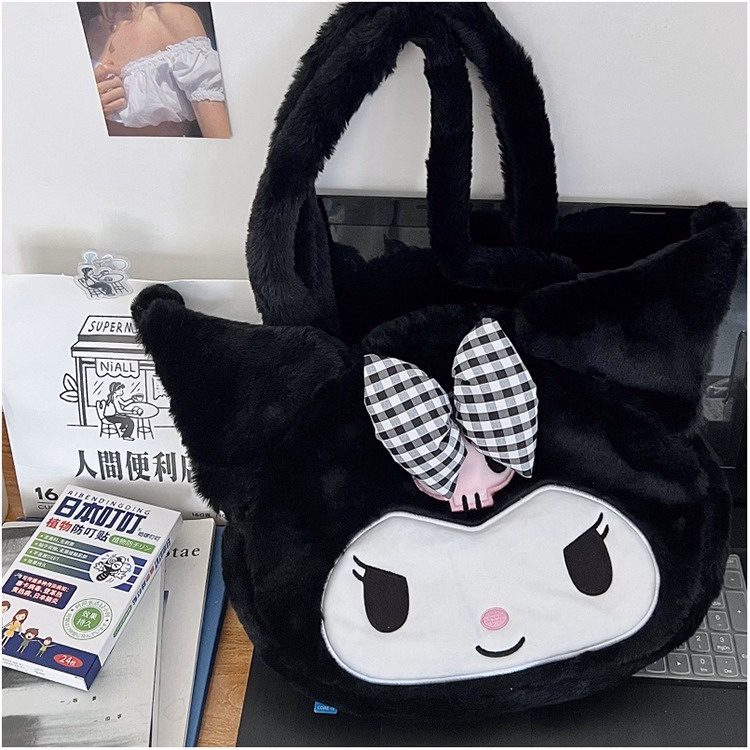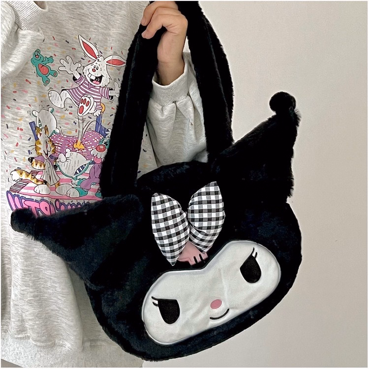 Túi xách nhồi bông Sanrio Kuromi Đen siêu đáng yêu cho bạn nữ