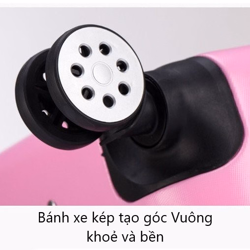 Bánh xe: Thiết kế 4 bánh xe có thể xoay 360 độ, được làm từ cao su non không gây ồn, không bị mài mòn, giúp bạn dễ dàng di chuyển chiếc vali trên nhiều địa hình.