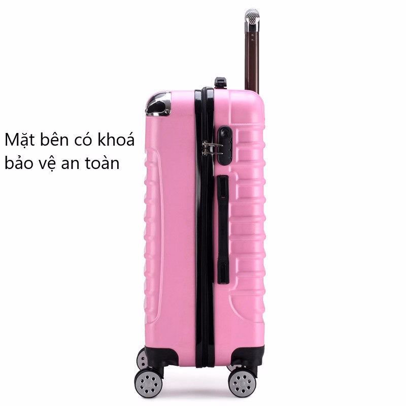 Mặt Vali: Được sản xuất từ sự kết hợp nhựa Pc+Abs dẻo dai, chất liệu vali vừa nhẹ vừa tiện, độ dẻo dai tốt, chống va đập tác động mạnh, đồng thời bề mặt vali thiết kế có vân chống xước, không thấm nước, dễ vệ sinh.