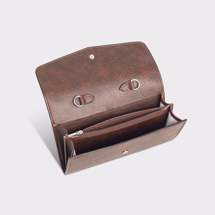 Ví được trang bị dây đeo dài 115 cm có thể tháo rời, biến đổi linh hoạt giữa ví cầm tay và túi đeo chéo. Phần dây được làm từ chất liệu đồng bộ với ví, đảm bảo độ bền và sự đồng nhất về thiết kế. Chi tiết móc kim loại sáng bóng không chỉ tăng thêm tính thẩm mỹ mà còn giúp việc tháo lắp dây trở nên dễ dàng.
