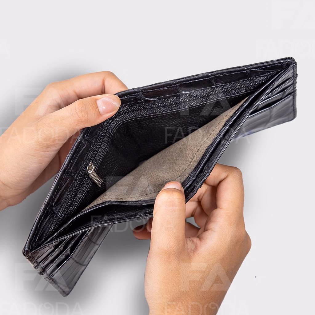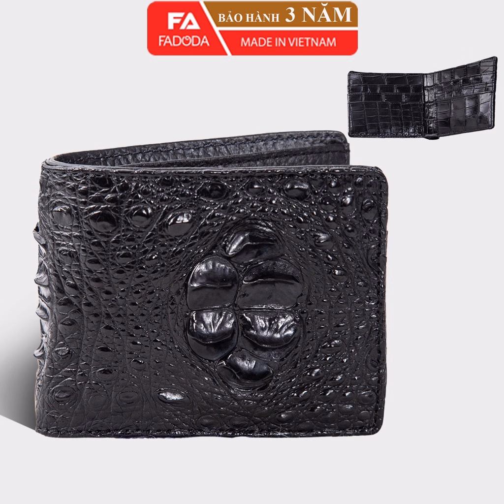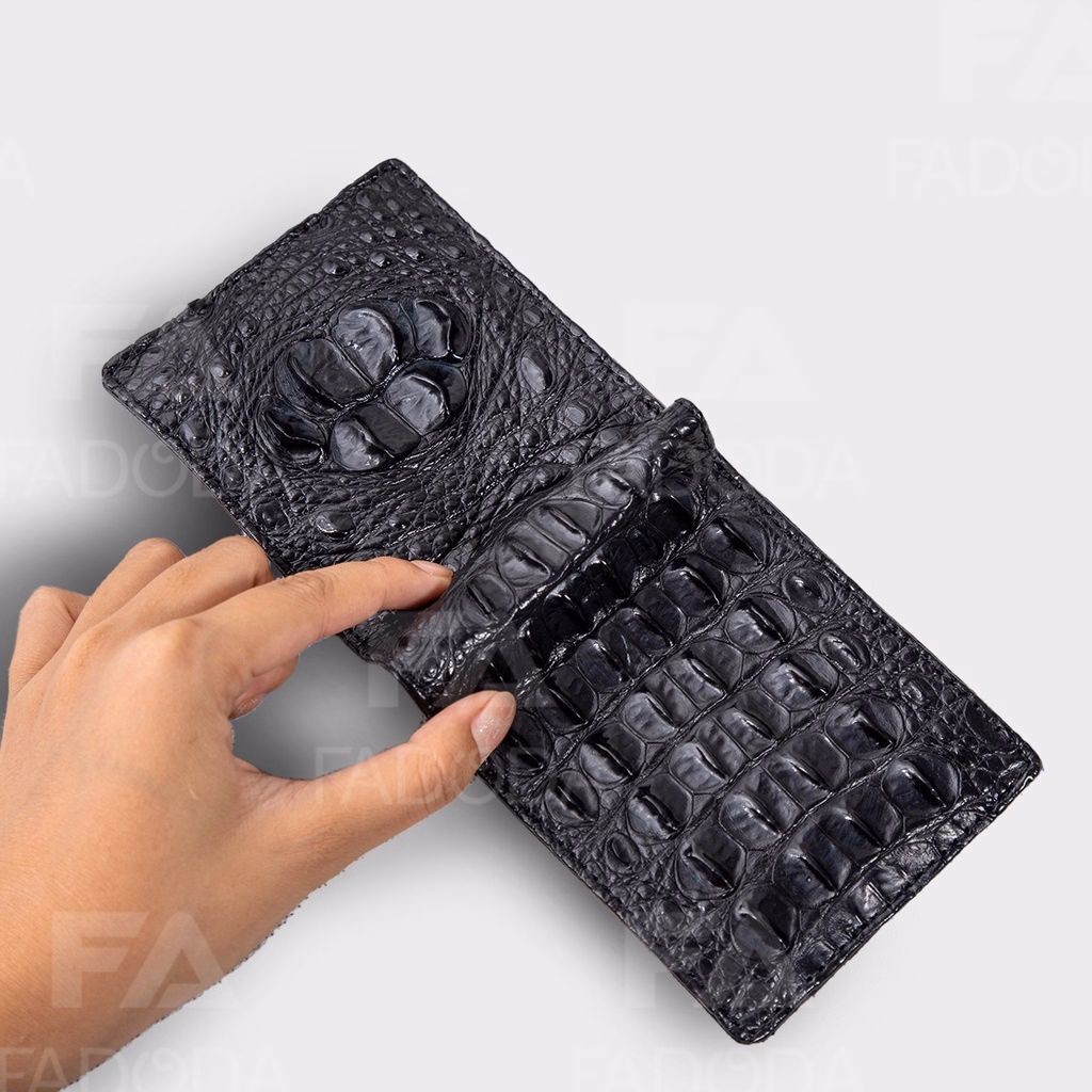 Ví da cá sấu 2 mặt Fadoda làm từ vân gù đầu cá sấu màu đen sang trọng. Đây là sản phẩm của thương hiệu trực tiếp sản xuất chuyên về Da Cá Sấu Fadoda.