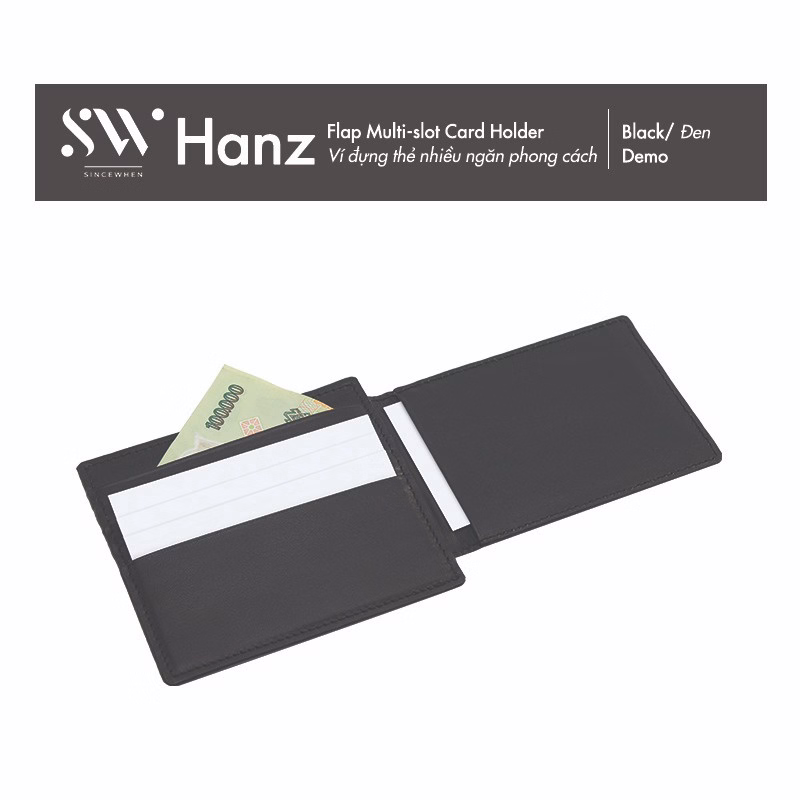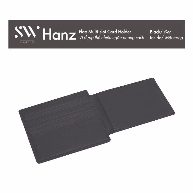 Tên sản phẩm: Ví đựng thẻ Sincewhen Hanz nhiều ngăn phong cách – Đen (Flap Multi-slot Card Holder – Black)