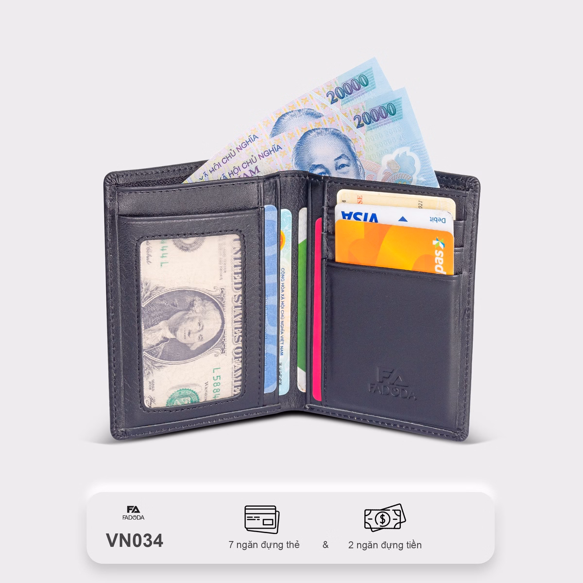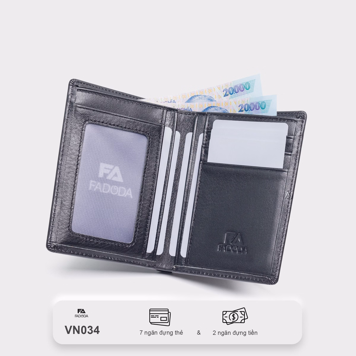 Mô Tả Sản Phẩm: Ví Nam Da Bò Thật Dáng Đứng Cao Cấp Thương Hiệu Fadoda Vn034