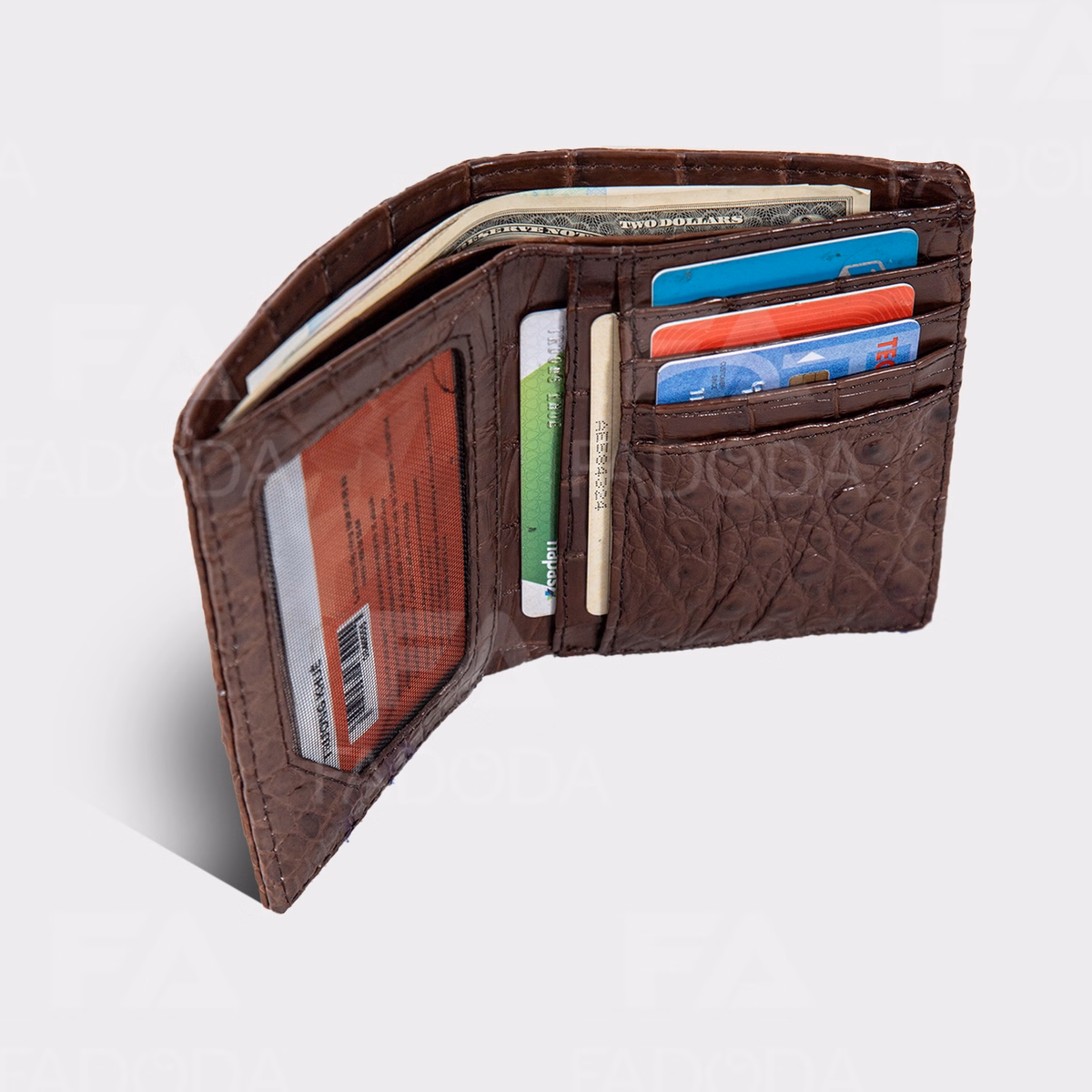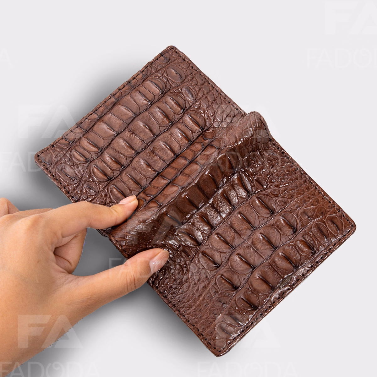 Ví đứng 2 mặt da cá sấu Fcw02l Fadoda làm từ vân gai lưng da cá sấu màu đen và nâu dễ sử dụng
