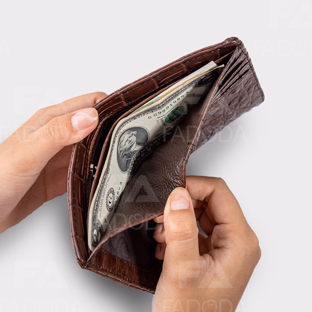 Ví nam đứng da cá sấu 2 mặt Fadoda cao cấp màu nâu vân bụng thiết kế 3 ngăn có khoá Fcw02b.