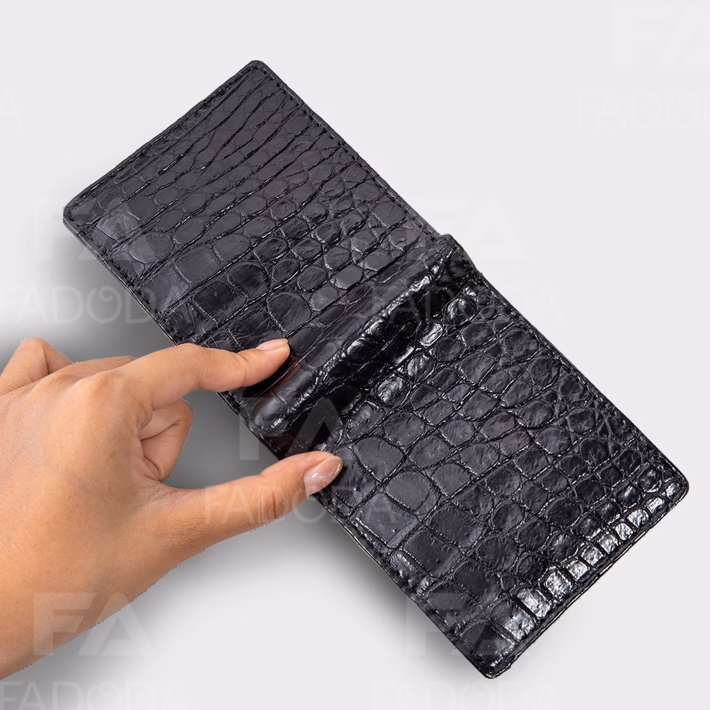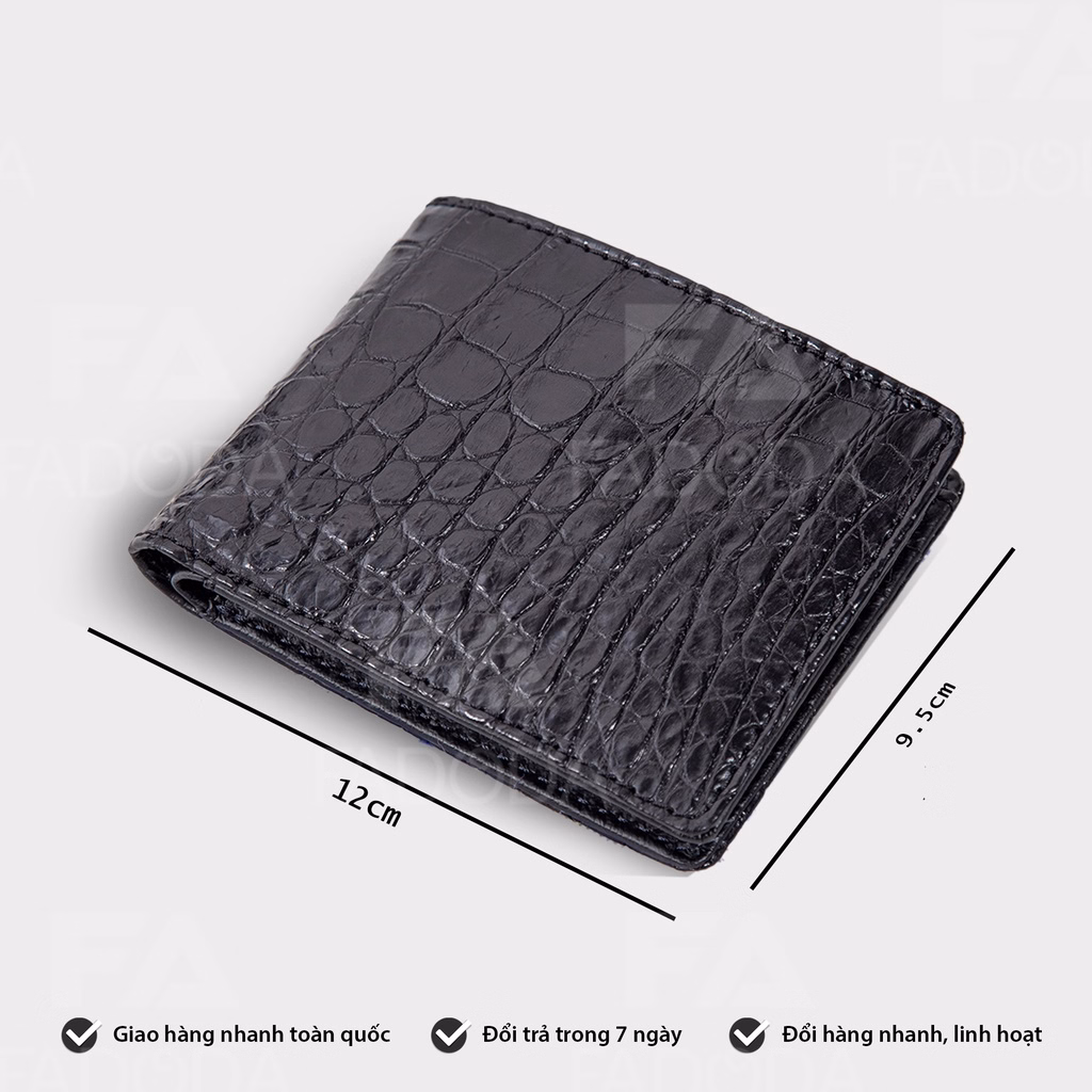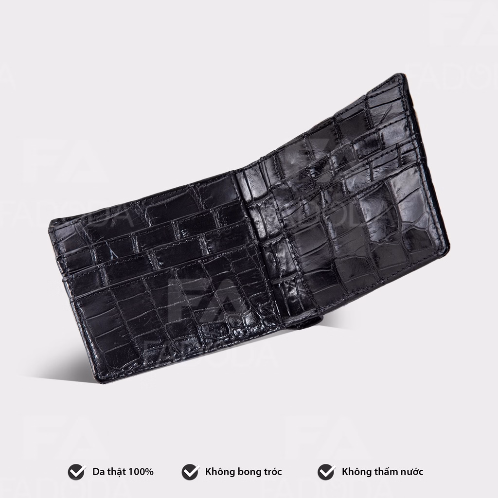 Ví nam da cá sấu thật 2 mặt Fadoda Fcw04b cao cấp làm từ vân bụng cá sấu màu đen sang trọng. Đây là sản phẩm của thương hiệu trực tiếp sản xuất chuyên về Da Cá Sấu Fadoda.